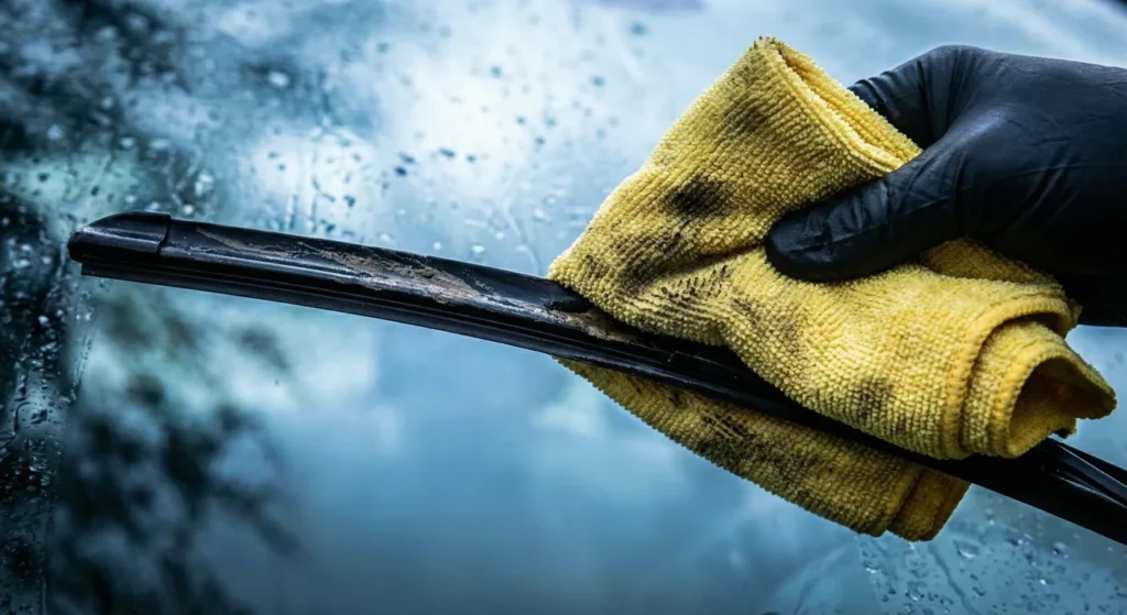 Después de hidratar, debes retirar el exceso de vaselina o silicona con un trapo seco y limpio hasta que no manche. Si dejas la goma pringosa, la próxima vez que llueva dejarás el cristal lleno de grasa y no verás nada. La goma debe quedar con tacto seco y mate, no brillante.