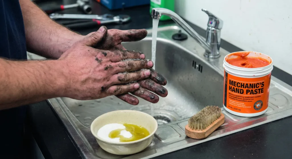 Si trabajas a menudo en el coche o la moto, los remedios caseros pueden ser engorrosos. Merece la pena invertir en un bote de Pasta Lavamanos de Mecánico. Estos productos están formulados científicamente para esto.