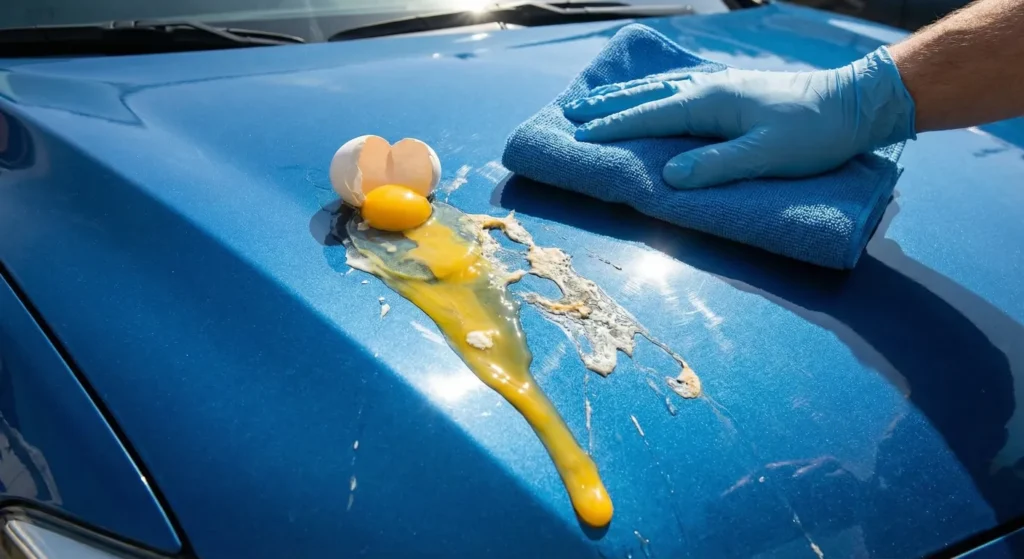 El error número uno que cometen los propietarios es intentar frotar el huevo cuando ya está seco o viscoso. Al secarse, las proteínas del huevo se desnaturalizan y se convierten en un cemento orgánico extremadamente duro. Si intentas rascarlo, arrancarás la pintura o crearás arañazos profundos que requerirán repintado.
