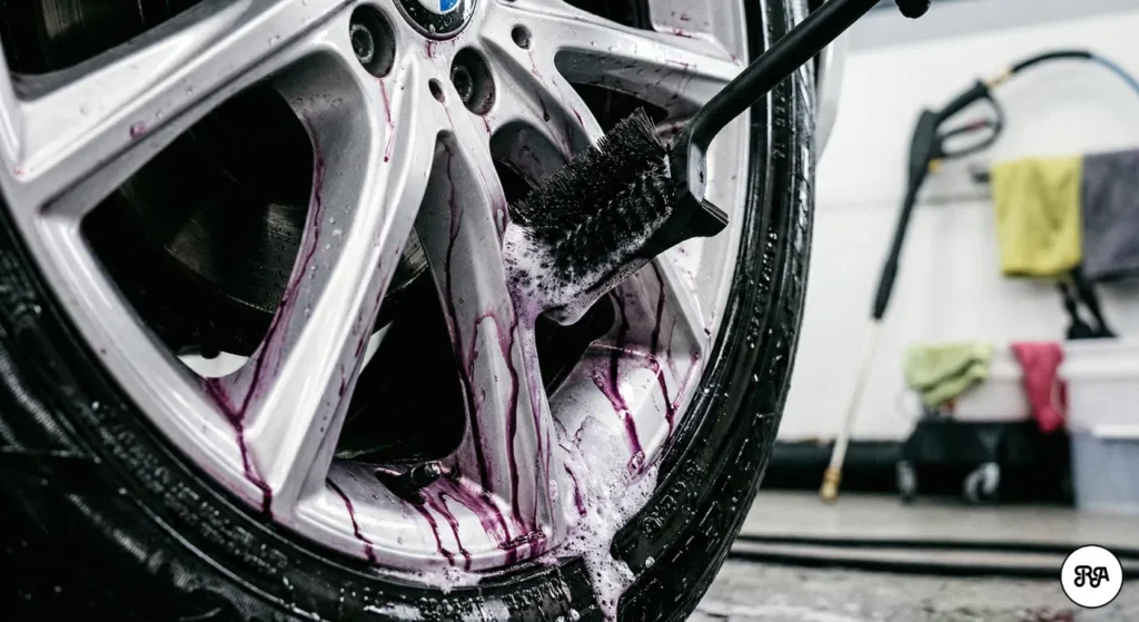 Sigue este proceso para una restauración completa. Hazlo siempre con la llanta FRÍA y a la sombra. Si aplicas estos químicos sobre una llanta caliente o discos de freno ardiendo, se evaporarán instantáneamente y pueden dejar marcas blancas difíciles de quitar.